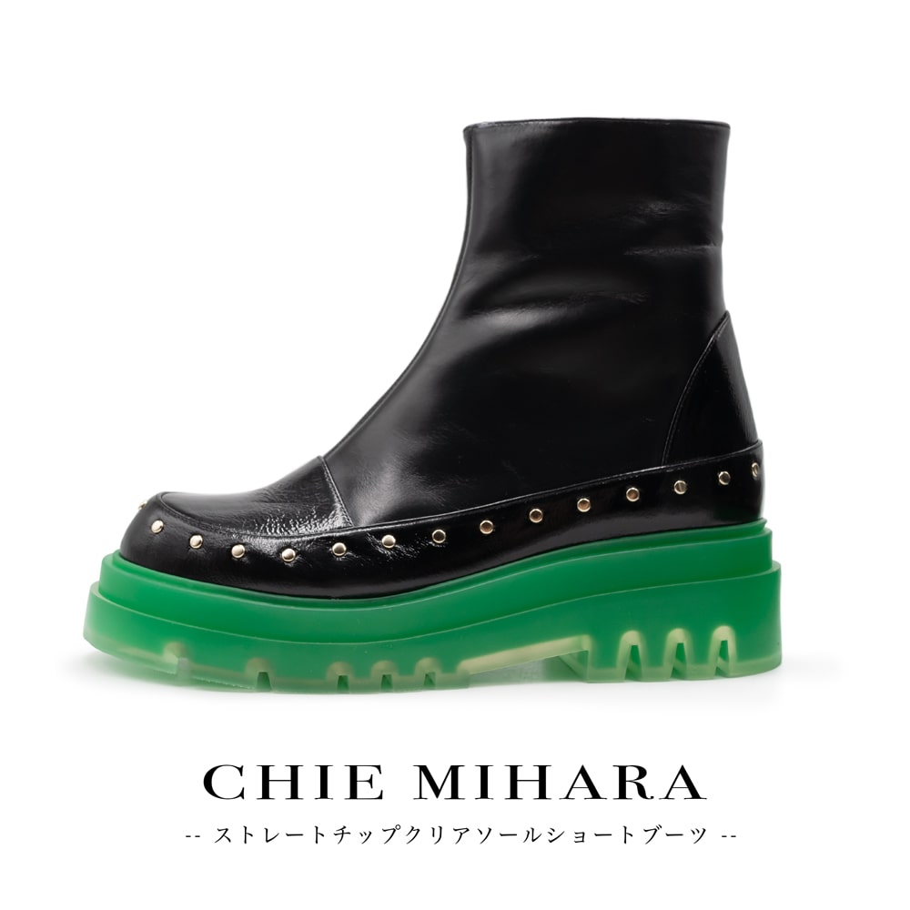 ■商品説明 CHIE MIHARA [チエミハラ]ストレートチップクリアソールショートブーツ5A YOKI NEGRO ブラック グリーン