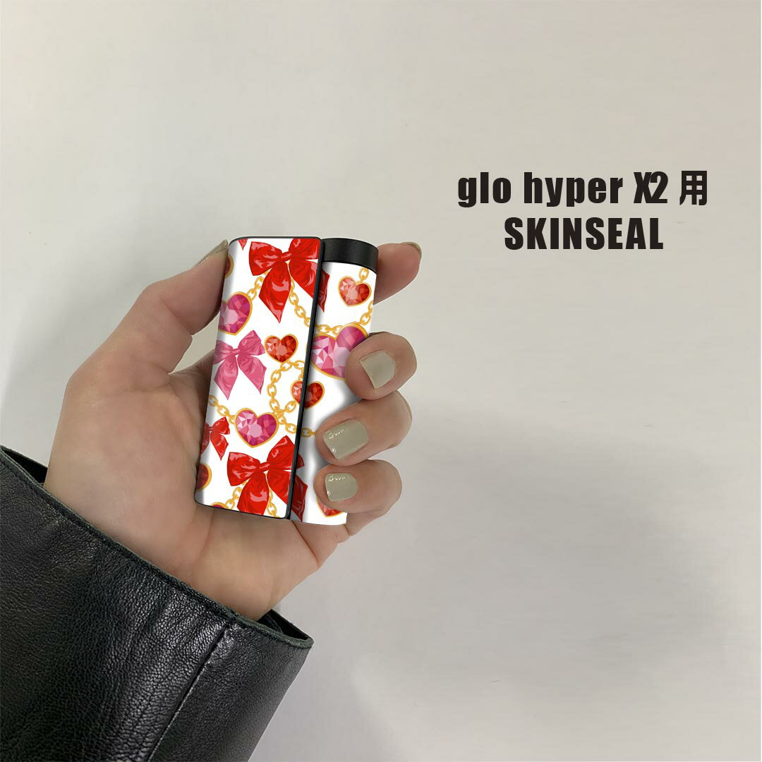 glo hyper x2 専用 デザインスキンシール 全面 フルセット カバー ケース 保護 グロー グロウ ステッカー デコ アクセサリー 電子たばこ 003521 " " ハート リボン 模様