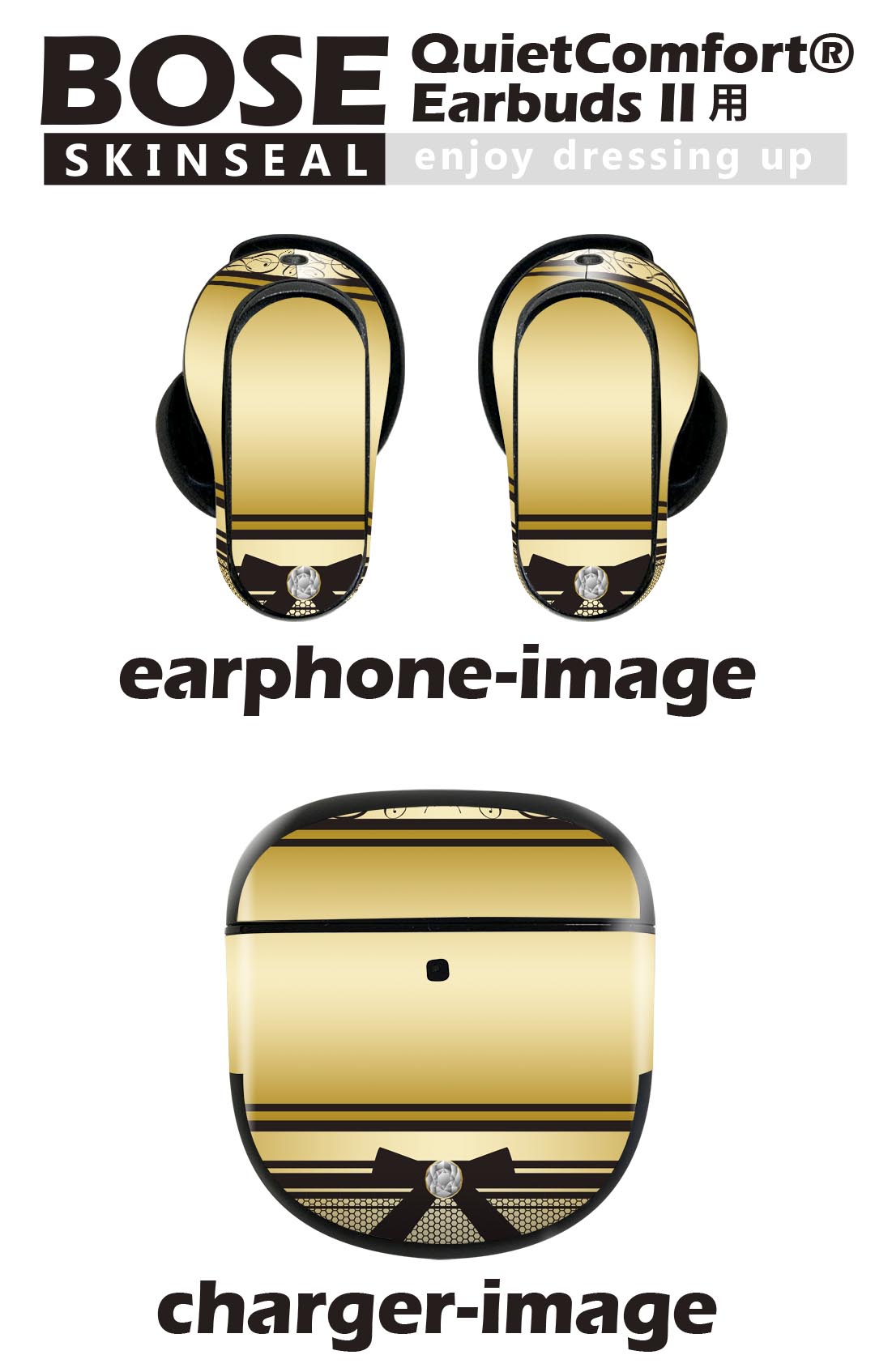 Bose QuietComfort Earbuds II 用 スキンシール ボーズ イヤバッズ2 用 ステッカー 本体3セット ケース1セット 保護 フィルム デコ ゴールド リボン ガーリー 005049