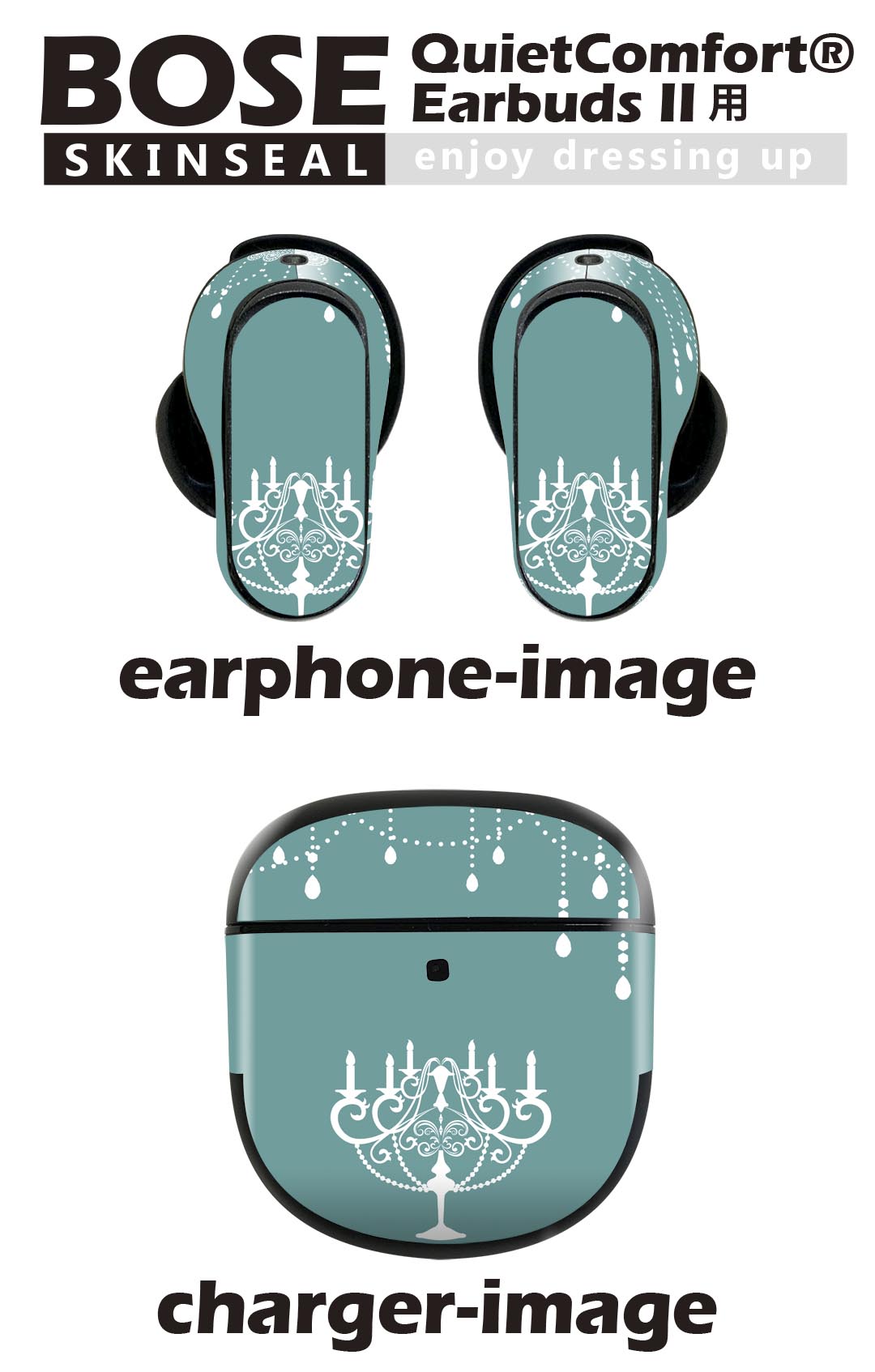Bose QuietComfort Earbuds II 用 スキンシール ボーズ イヤバッズ2 用 ステッカー 本体3セット ケース1セット 保護 フィルム デコ グリーン レース ガーリー 005075