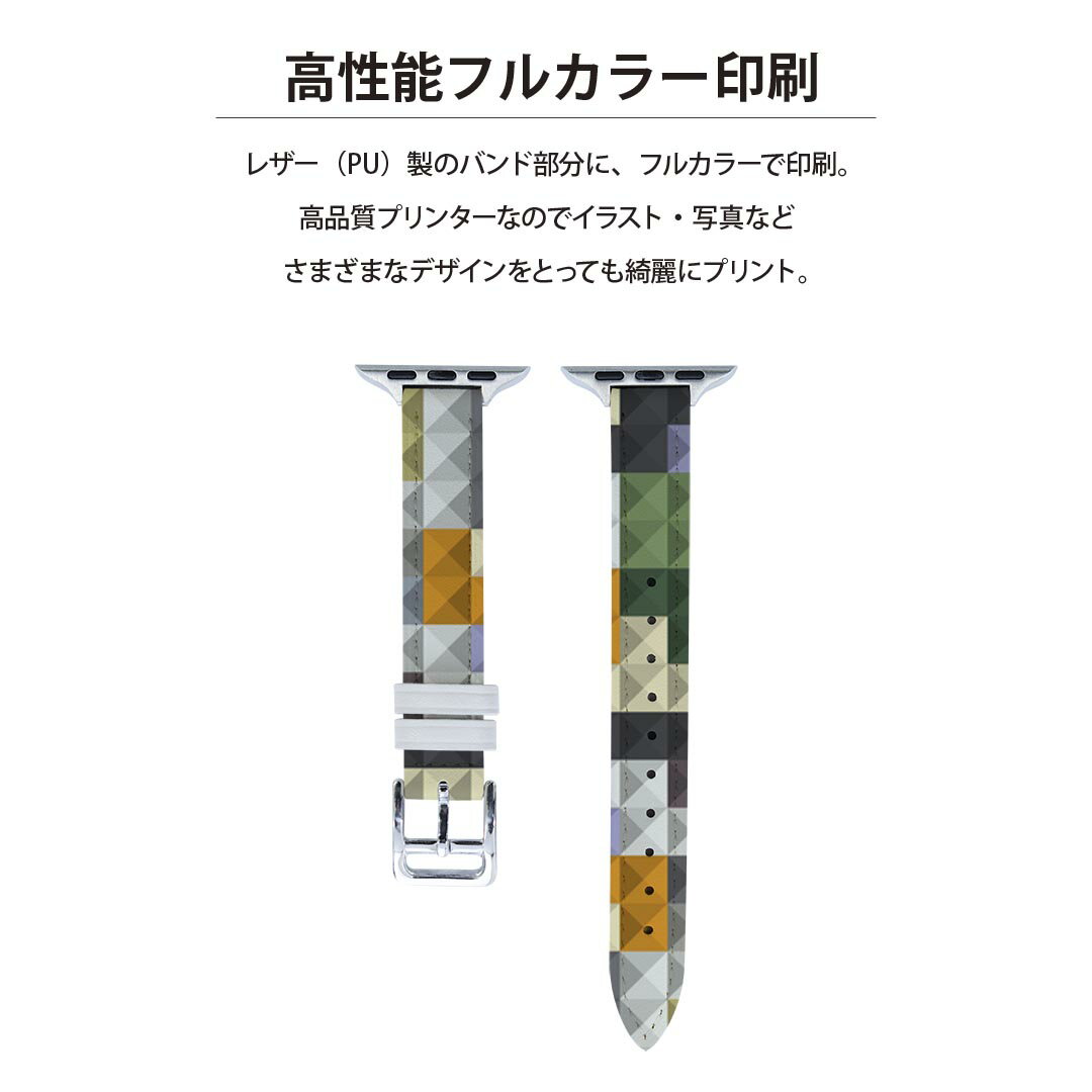 商品特徴・高品質なマイクロファイバーPUレザーを使用したApple Watchオリジナルバンド・38mmタイプ40mm 41mm兼用 初代・Series2・Series3・Series4・Series5・Series6・Series7・SE 対応・オリジナルのデザインで個性あるオシャレなバンドを。・高級感溢れるレザー(PU)製は、汚れにくく高性能プリンターで綺麗にオリジナルのバンド・ベルトを作成頂けます。注意事項画像はサンプルです。ご覧の環境によっては多少色味に違いを感じる場合がございます。 イメージと違った、モニターと色味が異なるという理由での交換や返金はご対応出来かねます。ご注文後に1点1点制作する受注生産品のため、不良品以外のご返品や交換は固くお断り致します。サイズの選択間違いも保証対象外となりますため、ご注文の際は必ずお使いの端末とご注文のサイズをご確認下さい。発送について完全受注生産のハンドメイド商品となりますので、既製品と比べて発送までお時間を頂いています。 基本的に決済確認後、2?3営業日、最大で10営業日での発送となります。繁忙期や休業日明けの場合はさらに時間がかかる場合があります。 その際には別途メールにてご連絡致します。メール便の場合、発送日から到着までに2?4日ほどかかる場合が多く、紛失などの保障もご対応できかねます。あらかじめご了承下さい。▼女性用・男性用 全商品はこちらから▼