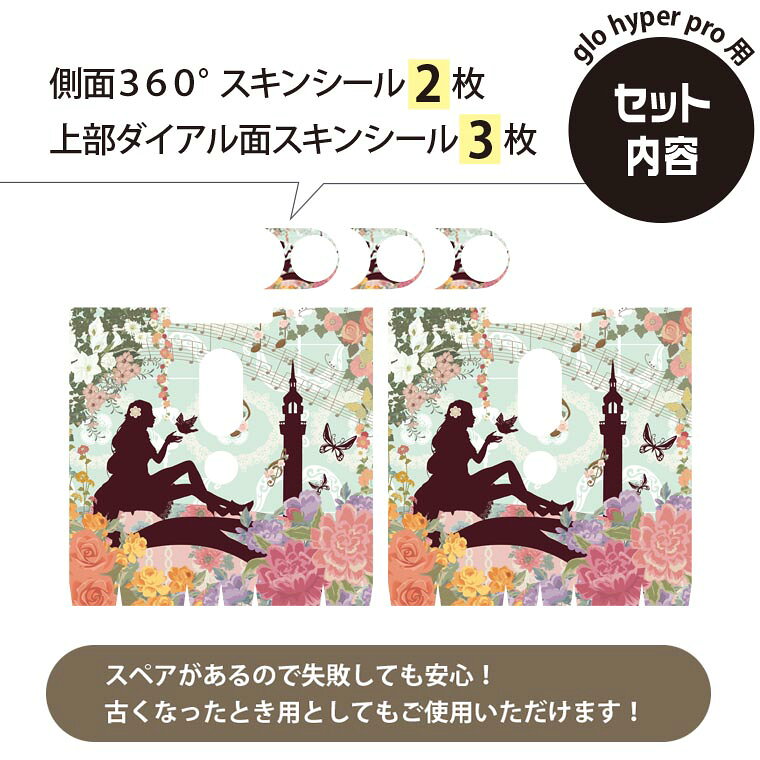 glo hyper pro 用 デザインスキンシール 側面2枚 天面3枚 セット 360°カバー ケース 保護 グロー ハイパー プロ グロウ ステッカー デコ アクセサリー 009102 童話モチーフ イラスト