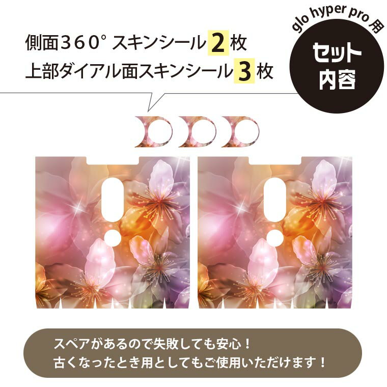 glo hyper pro 用 デザインスキンシール 側面2枚 天面3枚 セット 360°カバー ケース 保護 グロー ハイパー プロ グロウ ステッカー デコ アクセサリー 002023 花 カラフル