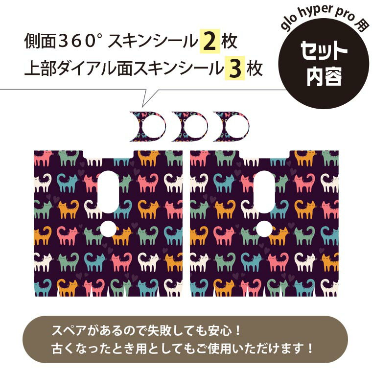glo hyper pro 用 デザインスキンシール 側面2枚 天面3枚 セット 360°カバー ケース 保護 グロー ハイパー プロ グロウ ステッカー デコ アクセサリー 007932 猫 ねこ イラスト カラフル