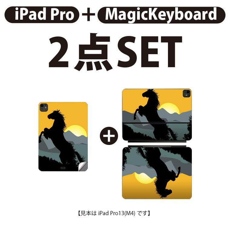 iPad Pro11(M4)用 iPad Pro13(M4)用 スキンシール 11インチ 13インチ Magic Keyboard keytop 2024年発売 第5世代 対応 各種セット 組み合わせ自由 全面 フル 前面 背面 保護シール 人気 馬 日の出 山 001142