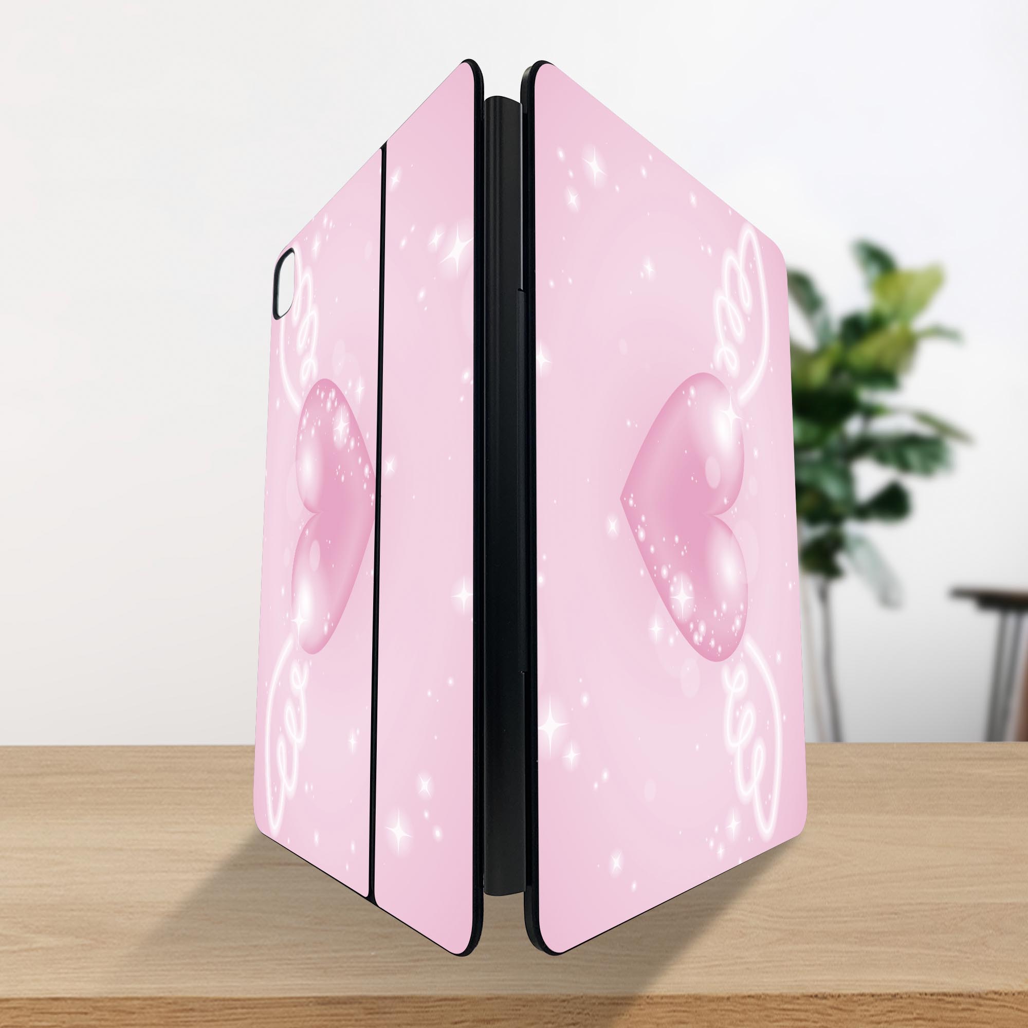 マジックキーボード 用 スキンシール 11インチ 13インチ iPad Pro11(M4) iPad Pro13(M4)用 2024年発売 第5世代 Magic Keyboard 対応 前面 背面 保護シール 人気 ハート 羽 ピンク 005260