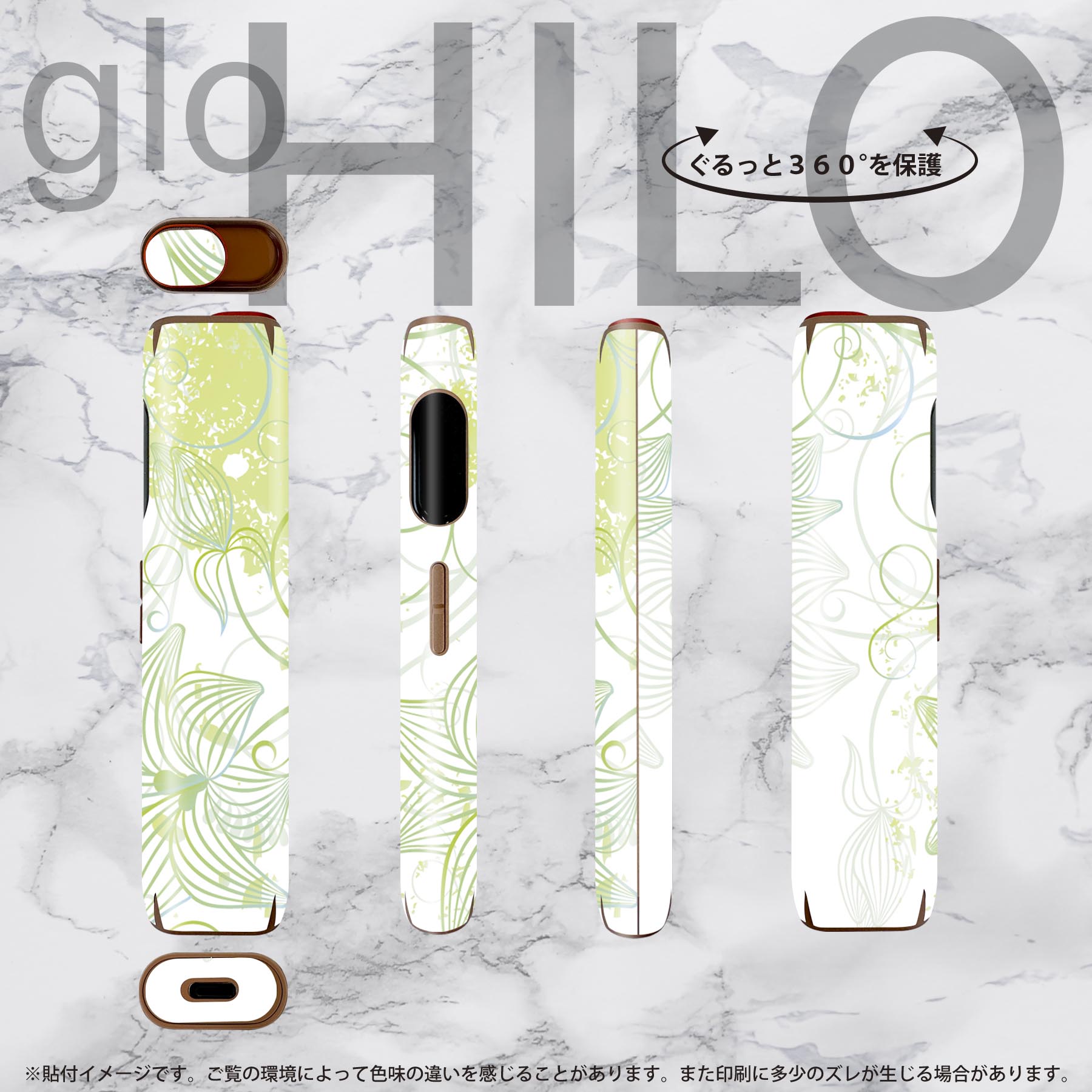 glo HILO 専用 デザインスキンシール 全面 2枚セットフルセット カバー ケース 保護 グロー グロウ ステッカー デコ アクセサリー ステッカー 保護シール 高品質再剥離性シート 001823 花 緑