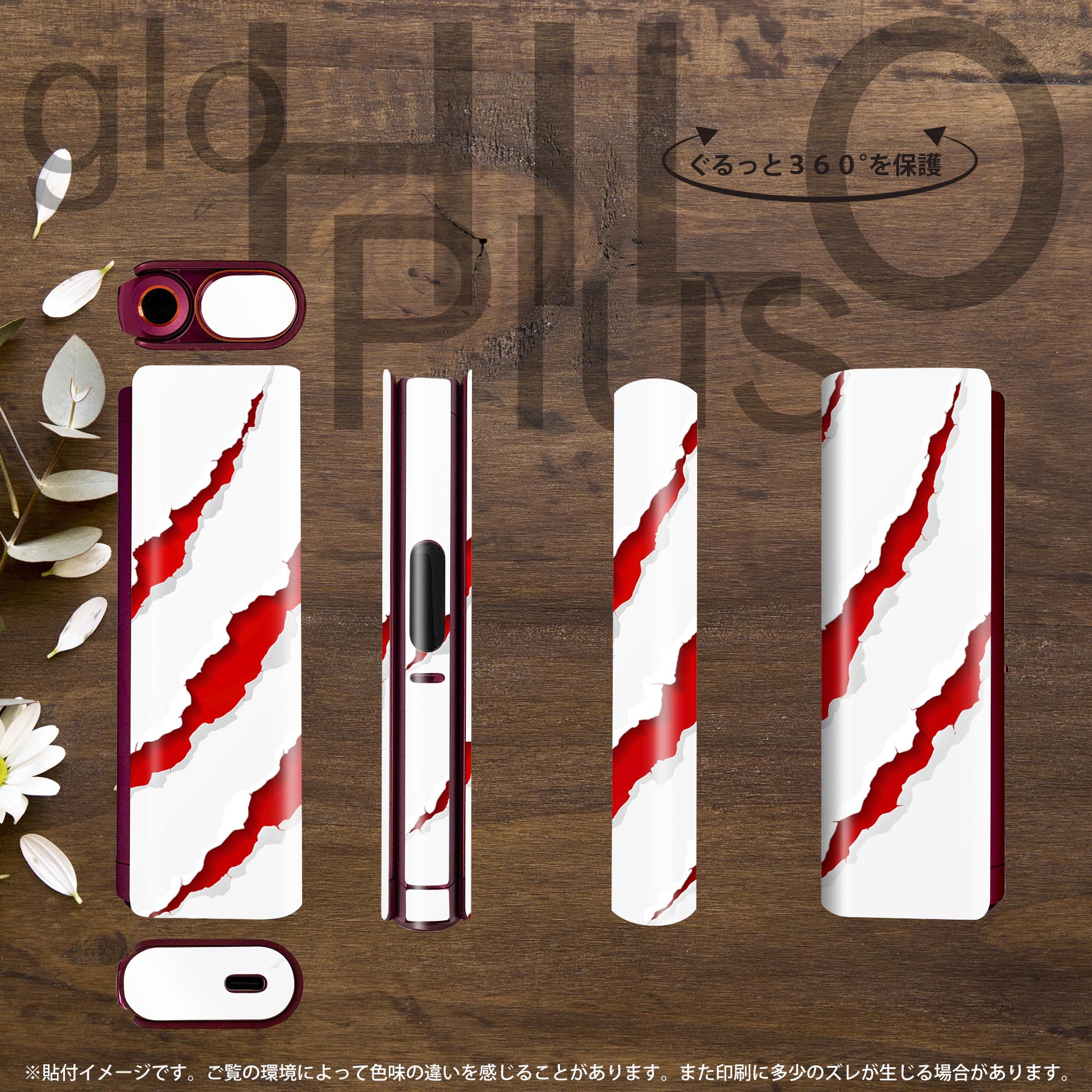 glo HILO plus 専用 デザインスキンシール 全面 2枚セットフルセット カバー ケース 保護 ステッカー デコ アクセサリー ステッカー 保護シール 高品質再剥離性シート 001093 爪痕 赤