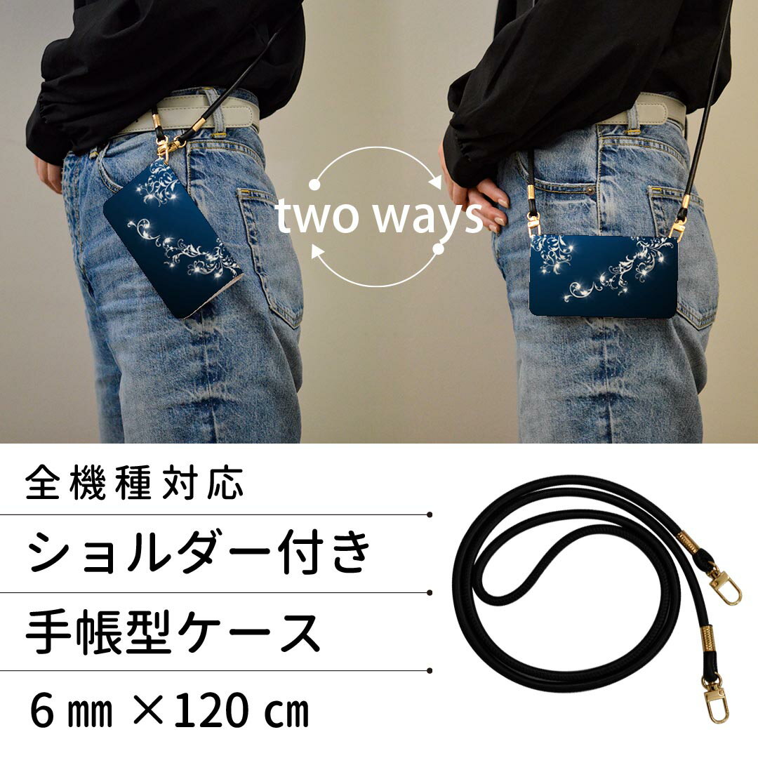 商品特徴・ショルダー付き手帳型スマホケース・シームレスな全面デザイン(内側は落ち着いたオフホワイト)・外側は高品質の人工革を使用・内側にはスマホを装着するケースが付属・機種専用のカメラホール仕様でケースを装着したままの撮影が可能・ワンセグや動画の視聴に便利な横置きスタンド機能・ICカードなどを2枚まで収納できるカードスロット付き・マグネットフリップで開け閉めカンタン注意事項商品画像はサンプルイメージですので、ご覧の環境によっては多少色味に違いを感じる場合がございます。イメージと違った、モニターと色味が異なるという理由での交換や返金はご対応出来かねます。ショルダーとカバーのみの販売で本体は付属しません。ワイヤレス充電対応機種についてはお使いの機器や環境により反応しない場合があります。その場合お手数ですがケースから外してお使い下さい。卓上ホルダ及びワイヤレスでの充電は保障の対象外となります。こちらは無地のレザーにデザインをプリントした商品で、デコなどの加工はございません。凹凸や光沢があるように見えたり布地や金属を素材にしたように見える商品もありますが、デザインの図版によるものです。撮影時にカバーが映り込む恐れがあるため、カメラ用の穴は若干大きめに開けています。カメラ穴の位置にわずかなズレが生じる場合がございます。また印刷時に微妙な画像のズレが生じる場合がございます。ご注文後に1点1点制作する受注生産品のため、不良品以外のご返品や交換は固くお断り致します。機種の選択間違いも保証対象外となりますため、ご注文の際は必ず機種をご確認下さい。発送について完全受注生産のハンドメイド商品となりますので、既製品と比べて発送までお時間を頂いています。 基本的に決済確認後、通常で3営業日程度、最大で10営業日程度での発送となります。繁忙期や休業日明けの場合はさらに時間がかかる場合があります。 その際には別途メールにてご連絡致します。メール便の場合、発送日から到着までに2-4日ほどかかる場合が多く、紛失などの保障もご対応できかねます。あらかじめご了承下さい。