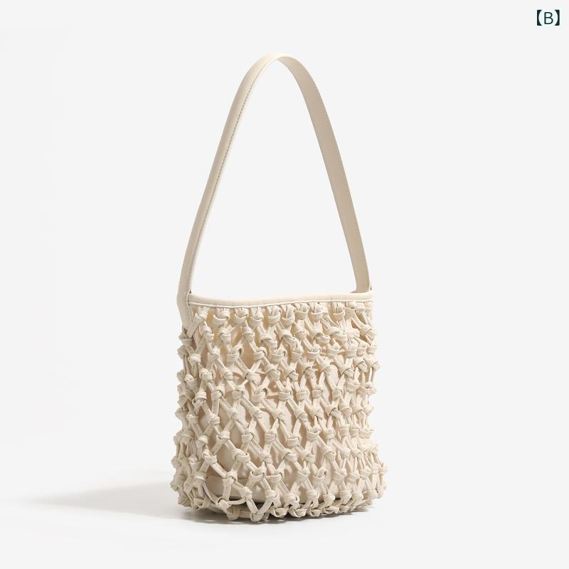 トートバッグ レディース 手編み 韓国風 インスタ風 春夏 バカンス 軽量 汎用 シングルショルダー バケットバッグ 編み込み 肩掛け 日常使い 旅行 コーデ アクセサリー