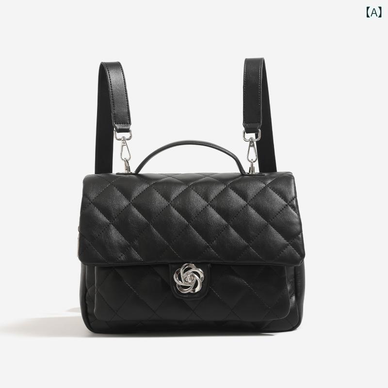 レディース バックパック 菱格柄 チェーン ショルダー 高級感 学院風 通勤 百搭 ハンドバッグ 小型 軽量 切り替え デザイン