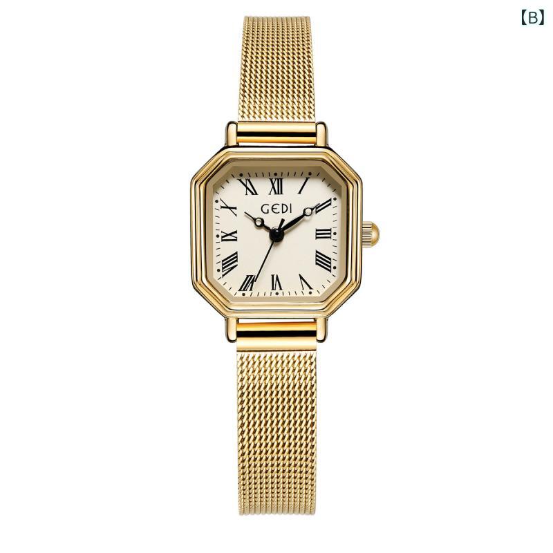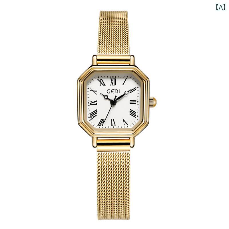 腕時計 レディース レトロ ローマ数字 小方型 メッシュベルト 防水 石英 高級感 小衆 軽量 日常使い シンプルデザイン 女性向け アクセサリー ファッションアイテム