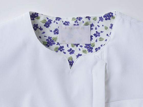 【商品説明】住商モンブランのスクラブ。イギリスのライフスタイルブランド「ローラ アシュレイ」シリーズのアイテムです。ネックラインが上品な印象でさりげない花柄使いで印象度アップ。透けにくい素材だから、安心して着られます。背裏や袖口部分に花柄生地をアクセントとして使用。時計などがかけられる便利なウエストループ付き。生地機能は制菌・吸汗・制電・防汚機能付きです。