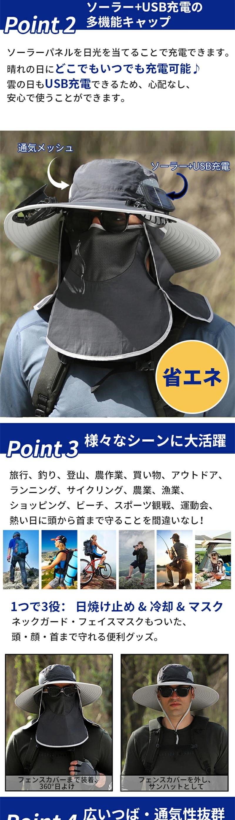 【紫外線UV対策・熱中症対策】アウトドアでの紫外線 UV対策だけではなく、軽量で通気性よく、 熱中症対策にも効果的! 蒸し暑さでは苦手しても、扇風機付きの帽子が大活躍しました!