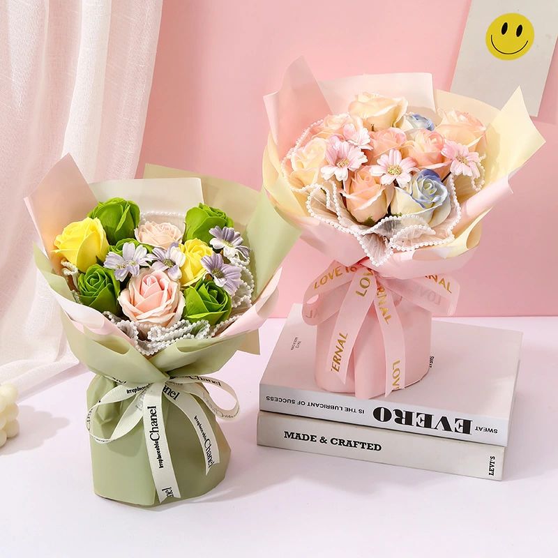 送別会 還暦 お返し 4カラーブーケ フラワーソープ プチギフト 女性 プレゼント 花束 お祝い 誕生日 贈り物 結婚祝い 開店祝い メッセージカード付 ソープフラワー 花 お見舞い 枯れない シャボンフラワー おばあさん ブーケ 造花 ギフト バラ バレンタインデー