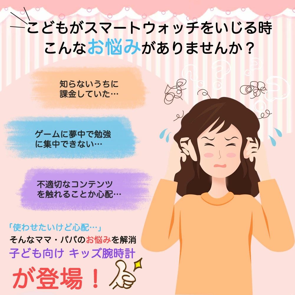 【1.8インチの大画面&選べる文字盤】見やすい1.8インチの明るいカラースクリーンを搭載。高解像度(240×284ピクセル)で、文字や画像がはっきりと表示されます。かわいくてポップな約22種類の文字盤を搭載しており、気分に合わせてデジタル/アナログ表示を自由に切り替え可能。カラーはピンクとブルーの2色展開。お好みに合わせてお選びいただけます。