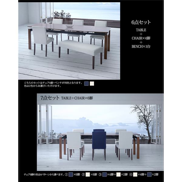 ダイニングセット 7点セット(テーブル+チェア6脚) テーブルカラー:ウォールナットブラウン チェアカラー:アイボリー4脚×ネイビー2脚 天然木ウォールナット材 デザイン伸縮ダイニングセット WALSTER ウォルスター【代引不可】