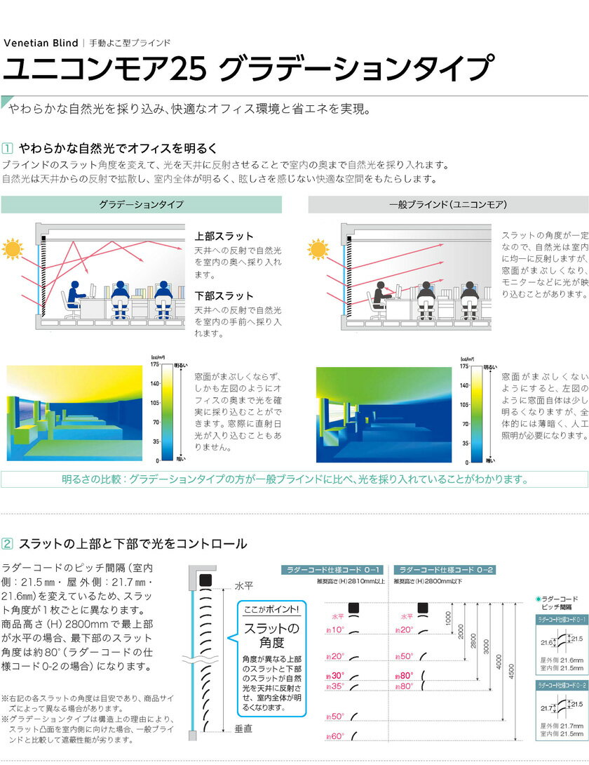 商品名ユニコンモア グラデーションタイプ 25mmスラット備考製作可能幅:500〜4000mm製作可能高さ:<仕様コード(0-1)>90〜4510mm※幅(W)500〜595mmは高さ(H)3530mmまで<仕様コード(0-2)> 90〜3520mm最大面積:9m2幅は5mm単位、高さは1cm単位で製作可能です。メーカー希望小売価格はメーカーカタログに基づいて掲載していますバリエーションユニコンモアグラデーションタイプ _ _ _ _ _ _ _ _ _ _ _ _25mmスラット遮熱ベーシック遮熱メタリック遮熱ツートン酸化チタンコート遮熱フッ素コート遮熱ノングレア遮熱送料について★離島や中継手数料の発生する地域は、別途地域料が必要です。その場合、一旦送料をご連絡致します。返品・交換について不良品・当方での手配間違い等以外は一切お受けできません。V1401 V1402 V1403 V1404 V1405 V1406 V1407 V1408 V1409 V1410 V1411 V1412 V1413 V1414 V1415 V1501 V1502 V1503 V1504 V1505 V1506 V1507 V1508 V1509 V1510 V1511 V1512 V1513 V1514 V1515 C011W C211W C407W C013W C011Y C211Y C407Y C013Yユニコンモア グラデーションタイプ 25mmスラット 酸化チタンコート遮熱・フッ素コート遮熱一覧はここをクリック↓一覧はここをクリック↓ユニコンモアグラデーションタイプ _ _ _ _ _ _ _ _ _ _ _ _25mmスラット遮熱ベーシック遮熱メタリック遮熱ツートン酸化チタンコート遮熱フッ素コート遮熱ノングレア遮熱