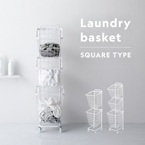 ■商品内容Laundry basketSQUARE TYPE・簡単仕分けのバスケットタイプ 洗濯物を分別しながら一か所にまとめて置けるので洗面所がすっきりと。・縦型収納で省スペース 縦型タイプのバスケットで、限られたスペースを有効活用できます。・大容量でも持ち運び簡単 バスケットは取り外しもできます。 取っ手付きなので大容量でも持ち運び簡単。・水や汚れに強い粉体塗装 汚れに強い素材で、水回りでの使用も安心。 汚れても簡単にお手入れが可能です。
