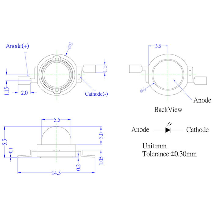 明るく発光するHigh Power LEDです。 電子工作などにご活用ください。 ご使用の際は別途、追加の放熱処理を施してください。