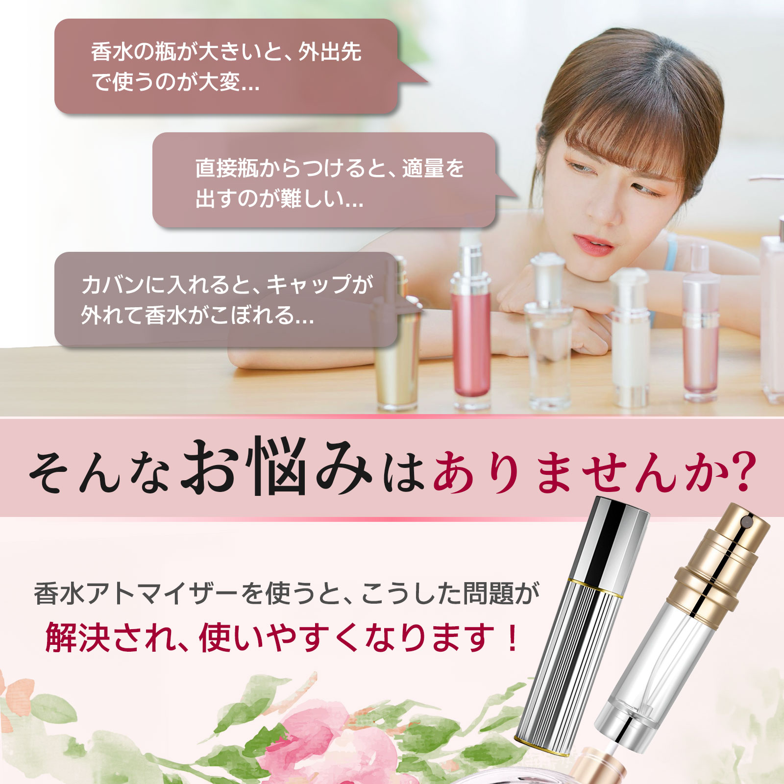 【全店30%OFFクーポン5日23:59迄】アトマイザー 香水 詰め替え 容器 香水噴霧器 携帯用 コンパクト 持ち運び便利 ポータブル ワンタッチ補充 底部充填 香水スプレー パフューム プッシュ式