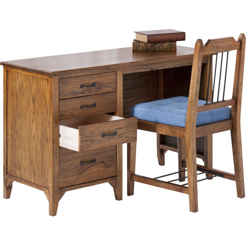 東谷 ティンバー デスク 机 幅112 天然木 収納 引き出し 木製 アンティーク シンプル 木目調(ブラウン)