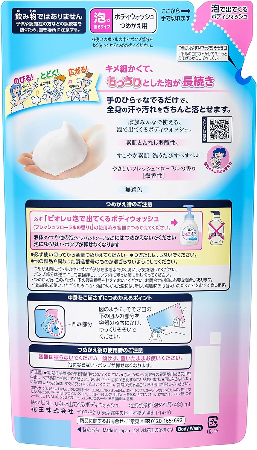 【15日限定 P10倍】 ビオレu 泡で出てくるボディウォッシュ ポンプ 600ml + つめかえ用 480ml(2個セット)まとめ買い+ オリジナルおしぼり付き