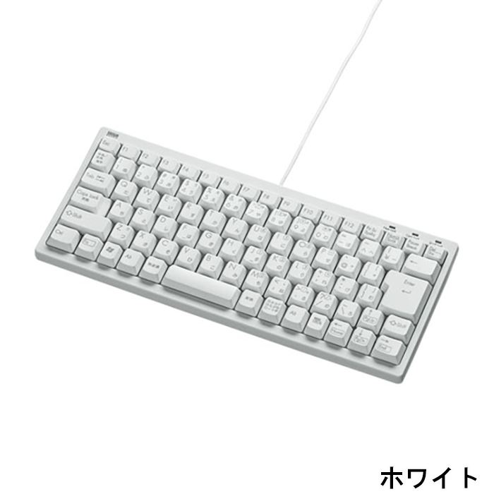 SEARCH WORD:キーボード コンパクトキーボード 有線キーボード 有線 ケーブル長1.5m USB&PS/2両対応 メンブレンスイッチ 86キー 日本語 耐久性 入力機器 コンパクト 収納 整理 便利 机 デスク 有効活用 黒 ブラック black 白 ホワイト white商品概要:テンキー部分を取り除き、文字入力だけに特化したコンパクトキーボードです。キーピッチはスタンダードキーボードと同じ19mmキーピッチです。文字の耐久性に優れたレーザー印刷を採用しています。使用しない時はキーボードを立てて収納できます。キートップは標準的な深い押し心地のメンブレンタイプです。USB-PS/2コネクタ付。USB接続でもPS/2接続でも使用できます。よく使う「ENTER」キーを大型化しました。ケーブルの取り回しに便利なケーブルを固定する溝付きです。(左、右、中心の三方向に固定可能です)カラーバリエーションは、ブラック(JAN:4969887698310/品番:SKB-KG3BKN2)、ホワイト(JAN:4969887698327/品番:SKB-KG3WN2)です。商品仕様: