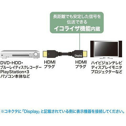 特徴FeatureHDMI端子を持つDVD・HDDレコーダー、高解像度テレビ、プロジェクターなどの機器を接続するケーブルです。プレイステーション(R) 3などの1080pの映像信号に対応したハイスピードHDMIケーブルです。長距離でも安定した信号を伝送可能なイコライザ機能をHDMIコネクタに内蔵しています。HDMIイーサネットチャンネル(HEC)に対応した機器と機器がイーサネット・ネットワークでつながります。※機能に対応した機器が必要です。3D映像に対応しています。※機能に対応した機器が必要です。高音質デジタル音声信号(マルチチャンネルサラウンド)対応しています。1080pフルスペックハイビジョン信号に対応しています。ケーブルの中心から「アルミシールド→アルミシールド→高密度編組みシールド」と三重のシールド処理を施し、ノイズから大切なデータを守ります。ツイストペアケーブルとドレンワイヤの1組ずつに、密閉型のアルミシールド処理を施し、外部ノイズから大切なデータを守ります。(TMDS用ツイストペアケーブルのみ)サビにも強く、経年変化による信号劣化の心配が少ない金メッキ処理のコネクタシェルとピン(コンタクト)を使用しています。RoHS指令に対応した製品です。<ご注意>本製品には信号の向きがあります。接続する方向(機器)を間違えて接続すると使用できません。仕様Spec商品名ハイスピードHDMIロングケーブル(アクティブ・30m)カラーブラックケーブル長30m(コネクタカバーの長さも含む)ケーブル直径8.5mmコネクタサイズテレビ・ディスプレイ側/約20.6×11.2×43mm出力機器側/約20×11×32mmコネクタ形状HDMIプラグ-HDMIプラグ(HDMIタイプAコネクタ-HDMIタイプAコネクタ)※コネクタに「Display」と記載されている側に表示機器を接続してください。対応解像度1080p/1080i/720p/480p(DeepColor対応)、最高解像度1920×1200メーカーサンワサプライブランドサンワサプライ型番KM-HD20-A300L3JANコード4969887845332カテゴリHDMIケーブル発売(予定)日発売中※記載された製品の価格、仕様、サービス内容及び企業情報などは発表日現在のものです。※最新の情報に関しましては、メーカーサイトをご覧ください。
