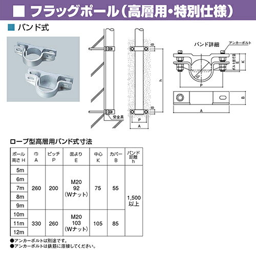 4tトラックが進入可能な場所でなければ、お届けできません。メーカーサンポール(SUNPOLE)商品名フラッグポール H9m品番FP-9HBA商品説明ロープ型高層用は設置高地上15m以上35m未満までの使用を条件として設計しています。地上用に比べ、より強度を求められるためパイプの直径や肉厚などを大きく設計しています。ロープ型特別仕様は地上設置限定の場合のみ、沖縄・離島など強風地域や、シーズンに限り鯉のぼりを取付ることも可能になります。ポール高さ6m以上は輸送の関係上、ポールを分割しています。サイズH9m重量34kg仕様ロープ型高層用・特別仕様形状バンド式使用上の注意最大瞬間風速15(m/sec)以上の場合は旗の使用を避けてください。推奨設置場所地上高15m~35m(屋上など),沖縄県、離島など強風地域(地上設置),鯉のぼりを使用する場合(地上設置)検索キーワード旗ポール 掲揚旗ポール 国旗ポール