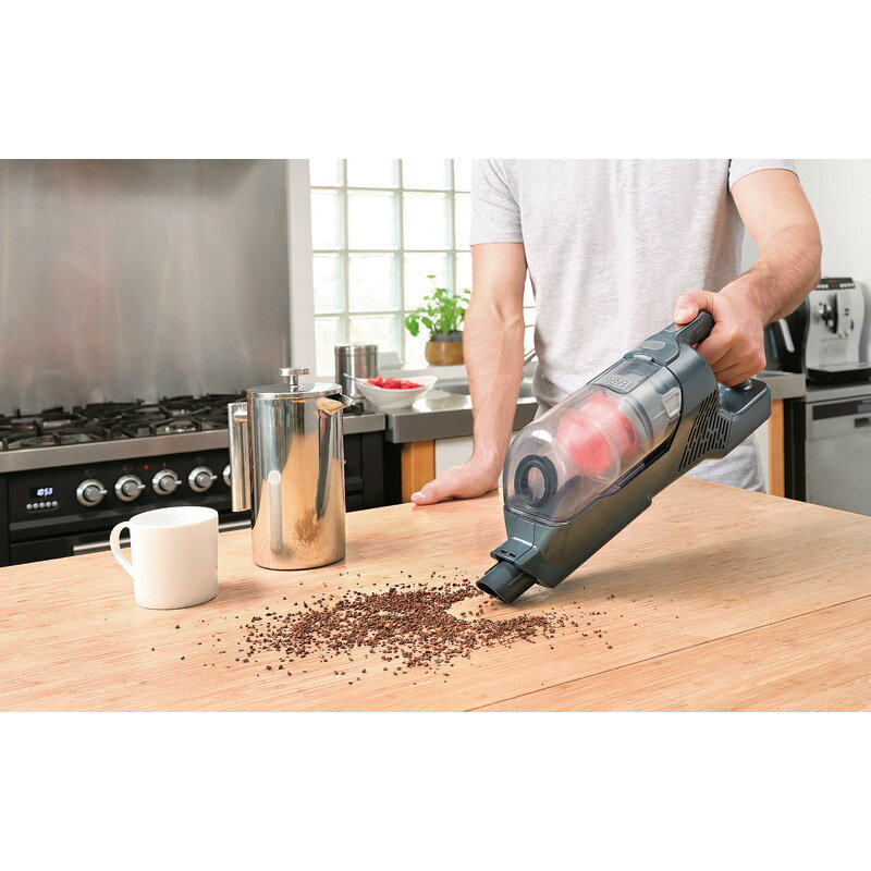 【BLACK+DECKER 18Vサイクロンクリーナー (BHFEA520J)】広告文責(有)イースクエアTEL:0120-532-772ハイパワーな18Vリチウムバッテリー搭載の2in1スティッククリーナー。スティック時は床の材質に合わせて最適なモードを自動で切り替えるフロアセンサー機能とLEDライト機能により効率的にお掃除が可能。ハンディ時は付属の隙間ノズルとブラシノズルを使用してより細かい部分をお掃除できます。ダストケースは水洗い可能でお手入れも簡単です。