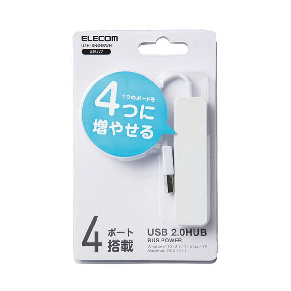 【送料無料】エレコム USB2.0ハブ(コンパクトタイプ) ホワイト U2H-SN4NBWH 1個