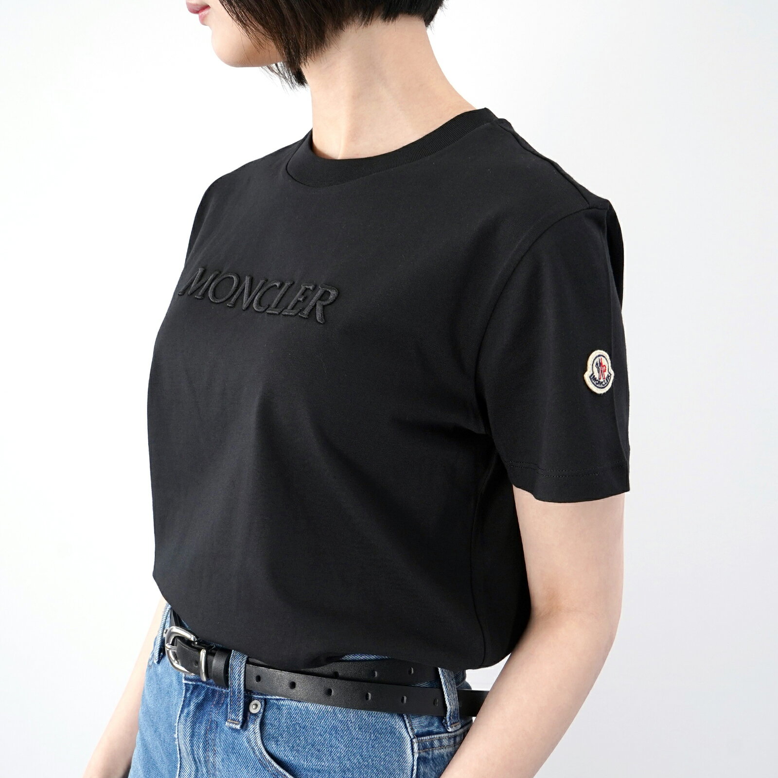 MONCLER モンクレール 半袖Tシャツ クルーネック 8C00008 89AUOブラック ホワイト Tシャツ コットン レディース 女性 人気 おすすめ プレゼント ロゴ