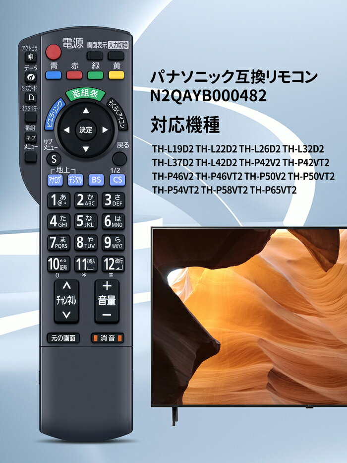テレビリモコン N2QAYB000482 for Panasonic パナソニックリモコン VIERAリモコン パナソニックテレビリモコン TH-L19D2 TH-L22D2 TH-L26D2 TH-L32D2 TH-L37D2 TH-L42D2 TH-P42V2 TH-P42VT2 TH-P46V2 TH-P46VT2 TH-P50V2 TH-P50VT2 TH-P54VT2 対応