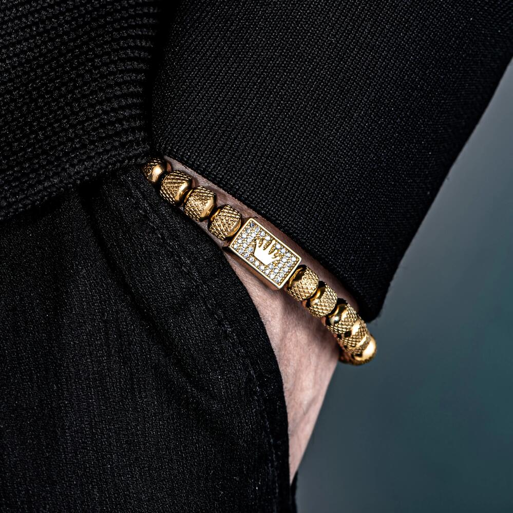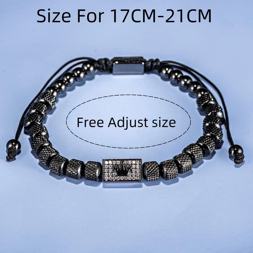 【送料無料】 ブレスレット スクエア クラウン ビーズ メンズ マイクロセット 贅沢 四角 調整可能 サイズ 素敵 編組