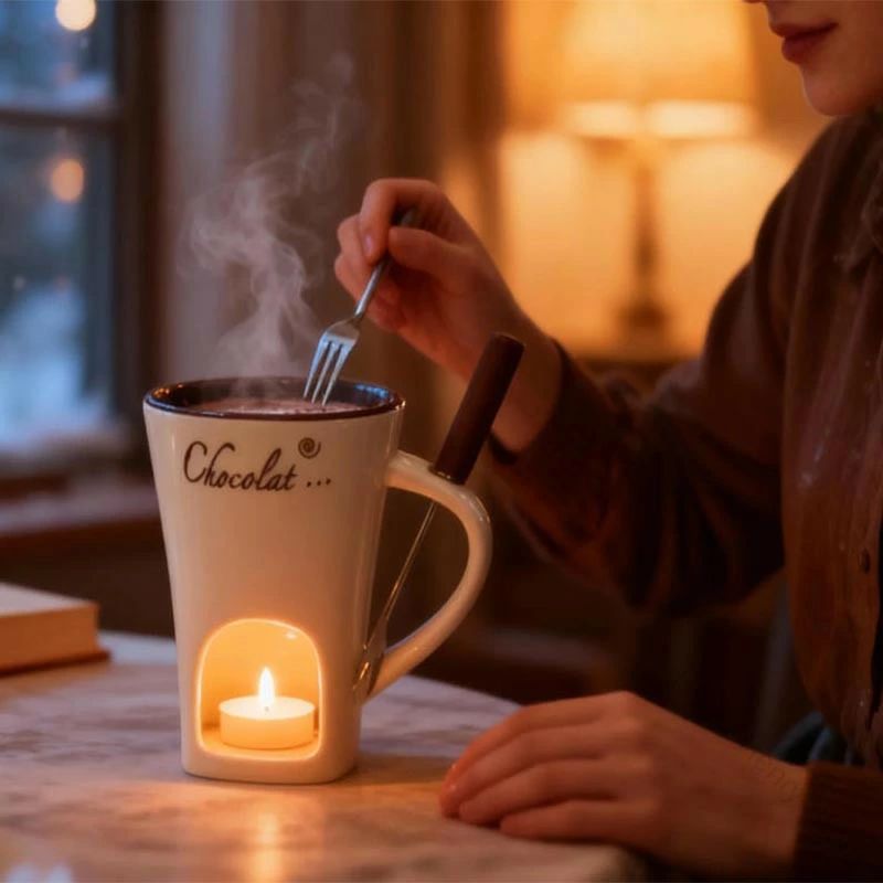 バレンタイン ホーム使用に最適 130ml チョコフォンデュマグ 家族子供向けクッキング用品 記念日 コーヒーカップ ホーク付き プレゼント バターウォーマーフォンデュマグ チーズフォンデュ鍋 料理 ホワイトデー メルティングマグ