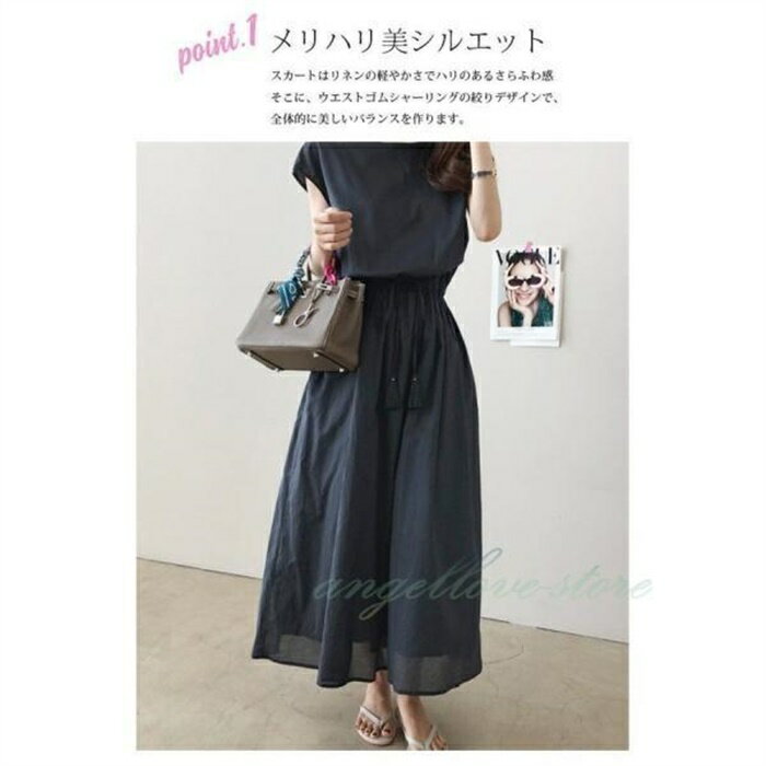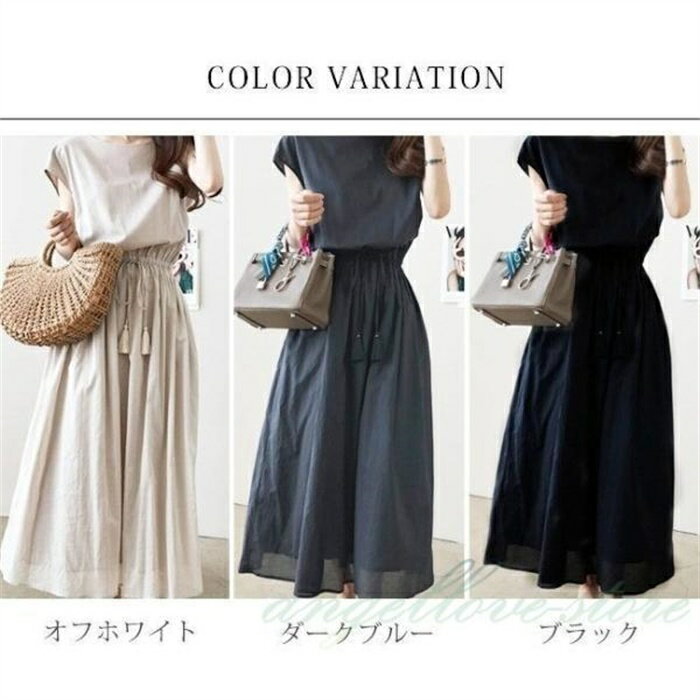 マキシワンピース リネン 無地 きれいめ タッセル リボン aライン レディース 秋新作 ワンピース ロング フレア ゆったり 体型カバー フレンチスリーブ 綿麻