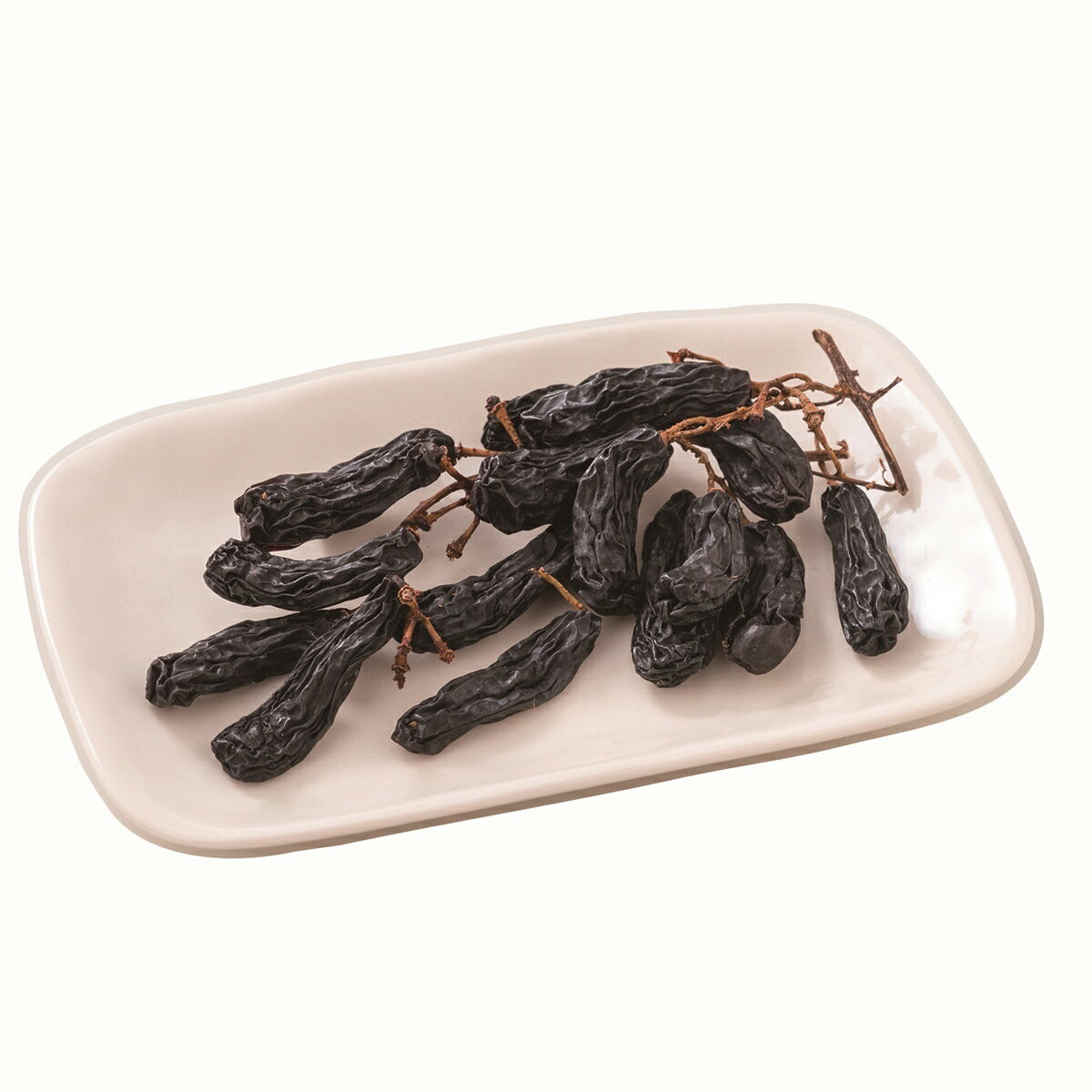 「スイートサファイア TM 種」の枝付き干しぶどうは、「フレッシュぶどう」の新鮮な風味を残しながらも、「レーズン」の凝縮された甘味も合わせ持つ、特別な乾燥果実です。 果肉の心地よい食感の後には、上品な甘味が口の中に広がります。 1つのプレートに生ハムやサラミ、ナッツやチーズ、ピクルス等を一緒に盛り合わせて、ワインやスパークリングワイン等とお楽しみください。 紅茶や中国茶との相性も良く、ティータイムにもお楽しみいただけます。