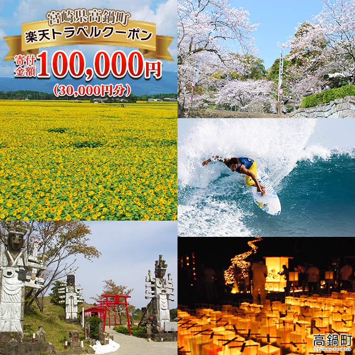 【ふるさと納税】宮崎県高鍋町の対象施設で使える楽天トラベルクーポン ※寄付額100,000円 決済日より2〜3日を目途に付与いたします