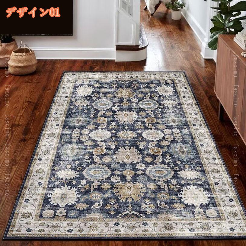 レトロカーペット ペルシャ絨毯 防音 洗える カーペット アンティーク風 ヨーロッパ 幾何学 花模様 洗濯可能 おしゃれ 床暖房対応 耐摩耗性 滑り止め 長方形 軽量 毛足短い 新築祝い 引越し祝い センターラグ リビングマット fascimo