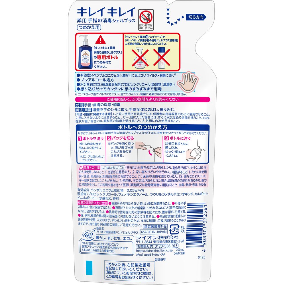 【5個セット】 ライオン キレイキレイ薬用手指の消毒ジェルプラス つめかえ用 [単品内容量/200ml] | キレイキレイ 手指消毒 ジェル ノンアルコール 医薬部外品 つめかえ用 ベンザルコニウム塩化物 消毒ジェル 皮膚洗浄 ライオン 消毒液