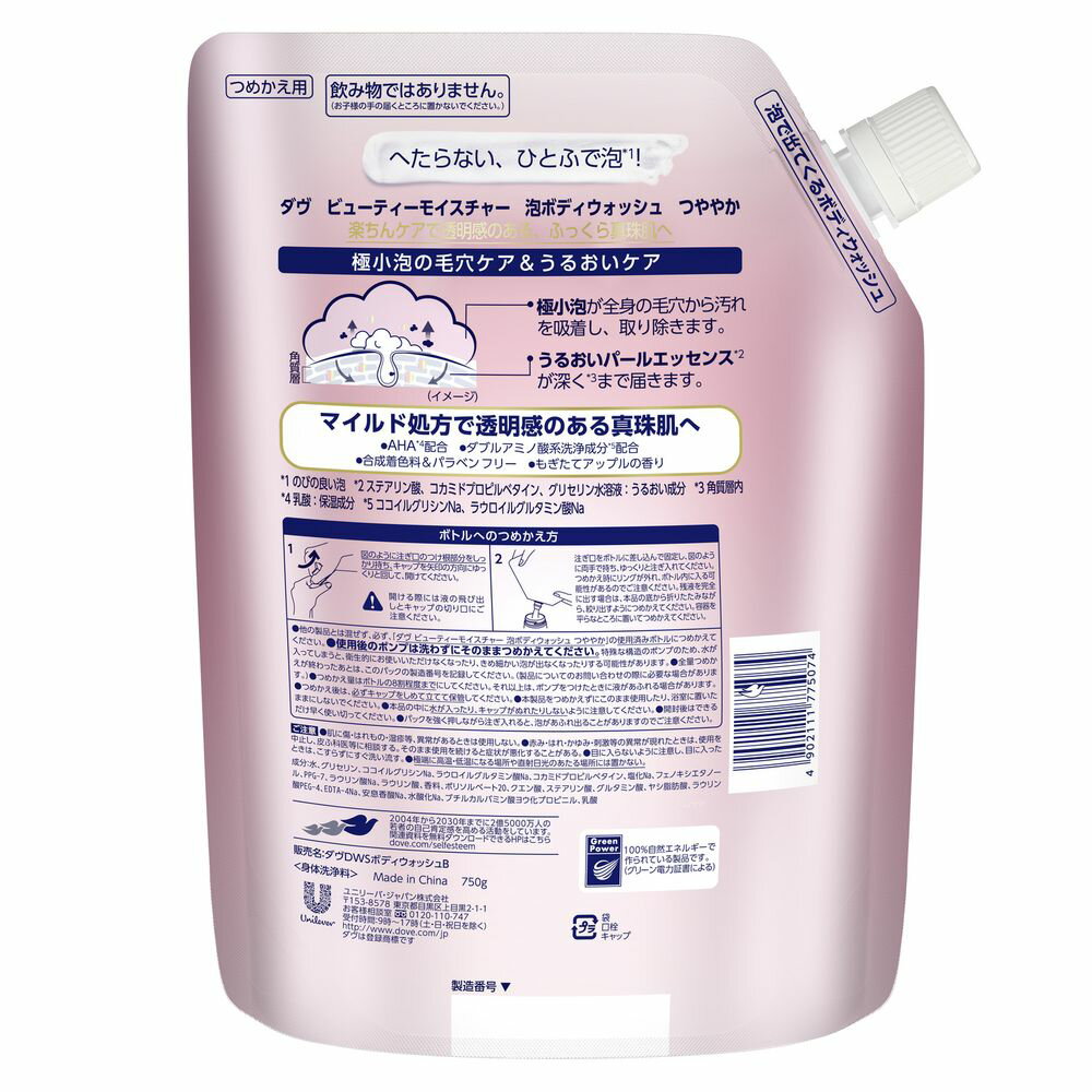 \レビュー特典有/ユニリーバ・ ダヴ ビューティーモイスチャー 泡ボディウォッシュ つややか つめかえ用 [単品内容量/750g] | ダヴ ボディウォッシュ ユニリーバ 泡ボディソープ ダヴビューティーモイスチャー 泡洗浄 ボディソープ 詰替用