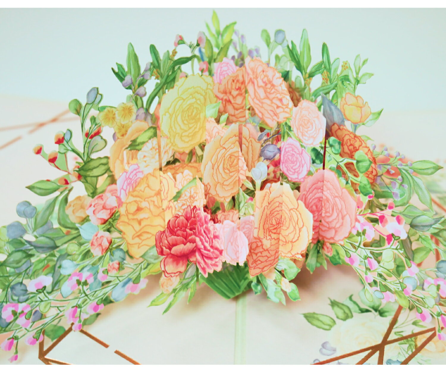 For-Denpoの特徴 For-Denpoは総務省認可の電報サービスです。 沖縄・離島を含む全国に祝電・弔電を即日配送いたします。 文字料金がかからず最大350文字まで(※カードタイプは154文字)入力できるのでご自身の言葉で思いを届けることができます。 結婚式へのお祝い電報や、就任・昇進祝い、誕生日祝いなど様々なシーンに合ったおしゃれで上質な電報を数多く取り揃えております。 また、突然のご訃報に際し、ご葬儀への弔電も承っております。 地域によっては当日中や翌日午前に配送できますので、お気軽にお問い合わせくださいませ。ポップアップカード flower 結婚式への祝電やお誕生日祝いなど お祝いの場面にぴったりな電報です。 アメリカのブランド「Lovepop」が手がけた、精巧なカットが魅力のポップアップカードです。造船設計の技術を応用した立体構造で、カードを開くと繊細なフラワーバスケットが華やかに飛び出します。祝電や結婚祝いにぴったりなデザインで、右側のポケットにはメッセージカード付き。特別な日の想いを、美しいカードに込めて贈れます。