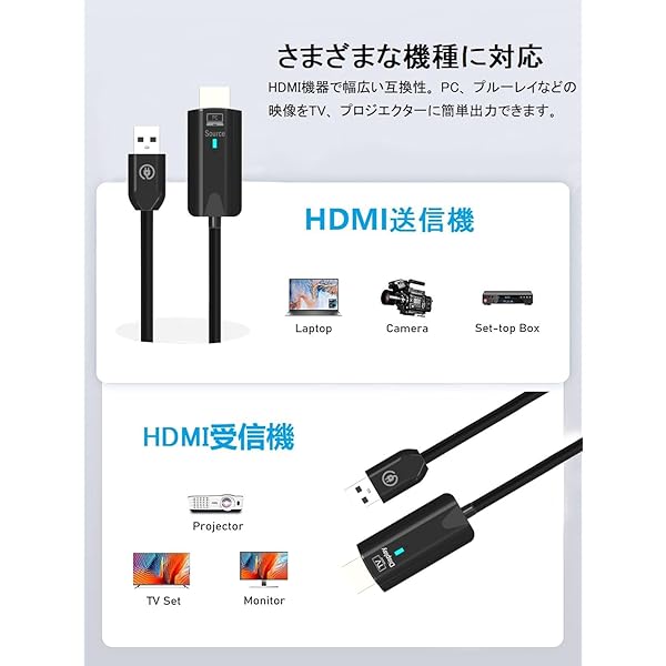 【幅広い互換性】ほとんどのHDMI出力デバイス、ラップトップ、PC、ブルーレイプレーヤー、カメラ、DVD、DVR、IPTV、セットトップボックス、ケーブル/衛星ボックスと互換性があります。 Windows、MacOS、Android の画面共有をサポートし、教育、ホームシアター、ストリーミングに最適です。伝送距離 ※使用環境により異なります。家電、障害物などで多少遅延が発生する可能性がございます。ゲームをする場合、HDMIケーブル製品をおすすめしております。