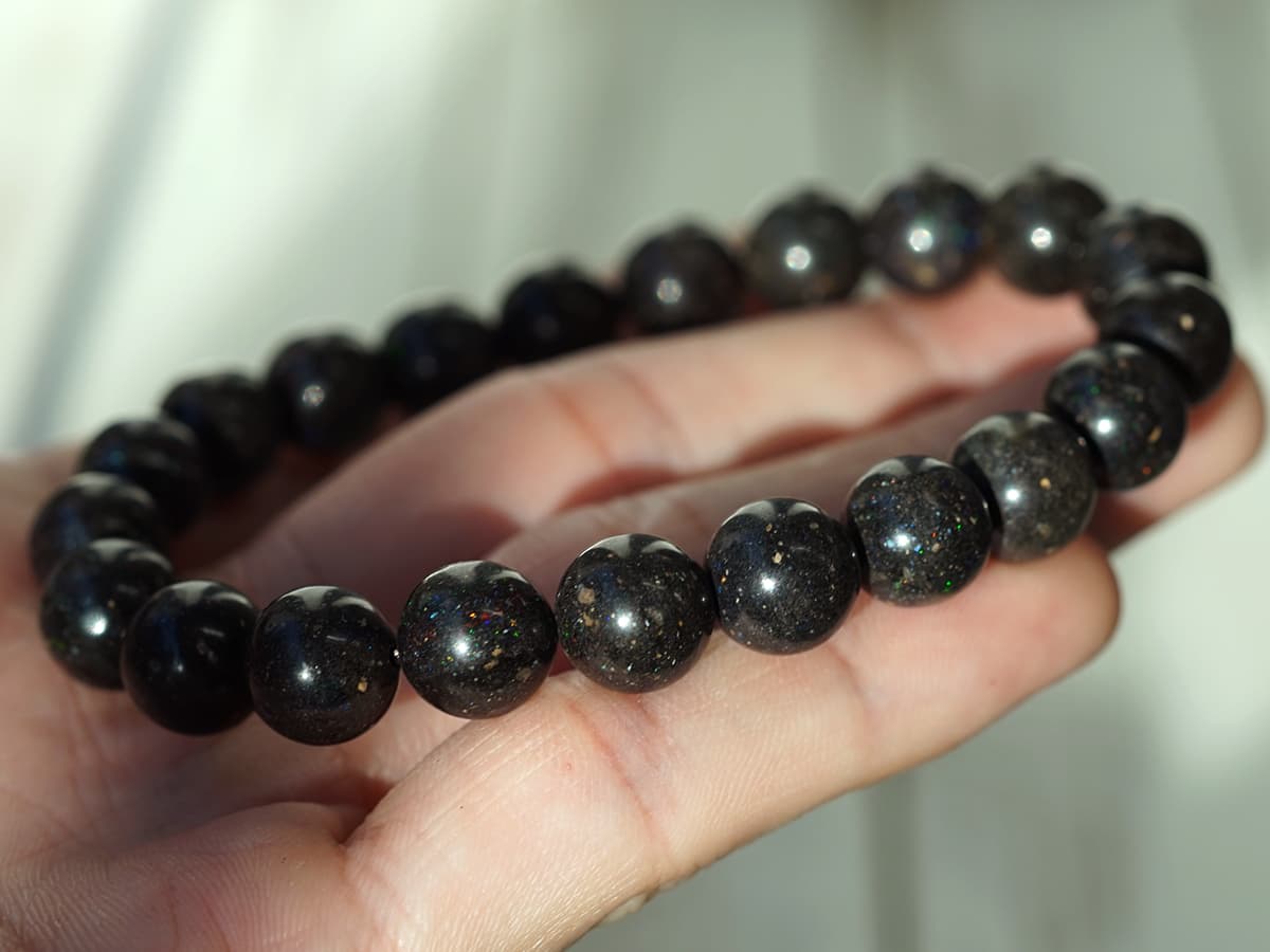 オパールについて宝石としても有名なオパール。 だれしも一度はその名を耳にしたことがあるほど有名な石です。 ネガティブな感情を落ち着かせ、積極性や自信を与えると云われています。 ネガティブな部分を自信に変え、自分の才能や美しさに気づき、引き出すことで 希望や夢を持てるようになり、自分自身を良いほうに導けるのだと思います。 縁結びや、運命の人との出会いなど恋愛的な要素が強いとも云われていますので 石自体の美しさも含めて女性におすすめの石です。マトリクス・オパール ブレスレット 10mm玉 No.6 最高級5A マトリクス・オパールブレスレットが初入荷です。よく見かけるホワイトがベースのオパールと違いブラックベースのオパールです。光を当てると、まるでカラフルな星空の様な輝きが顔を出すとても美しい一本。一見地味に見えるかもしれませんが、太陽光との相性が良く是非お出かけの際に身につけていただきたいブレスレットです。オパールの意味合いは、ネガティブな感情を落ち着かせ、積極性や自信を与えると云われています。ネガティブな部分を自信に変え、自分の才能や美しさに気づき、引き出すことで 希望や夢を持てるようになり、自分自身を良いほうに導けるのだと思います。縁結びや、運命の人との出会いなど恋愛的な要素が強いとも云われていますので 石自体の美しさも含めて女性におすすめの石です。 オパールには構造上「吸水性」があります。 湿気によって外見が変化したりもします。 有色の液体には接触させないようご注意下さい Fortune chart 石言葉 ・悪いものを浄化し、守ってくれる『お守り』としての役割 ・その人が本来持っている潜在能力を引き出してくれる(妨げるものを退けてくれる)役割 ・空間を浄化してくれる役割 ・その他の天然石のパワーを強めてくれる役割 ・ 特記事項 オパールには構造上「吸水性」があります。 湿気によって外見が変化したりもします。 有色の液体には接触させないようご注意下さい 商品スペッククォリティークラス:5A(AAAAA)玉サイズ:10mm産地:オーストラリア、メキシコ浄化・お手入れ 太陽光や水での浄化は避けて下さい。