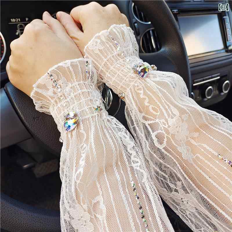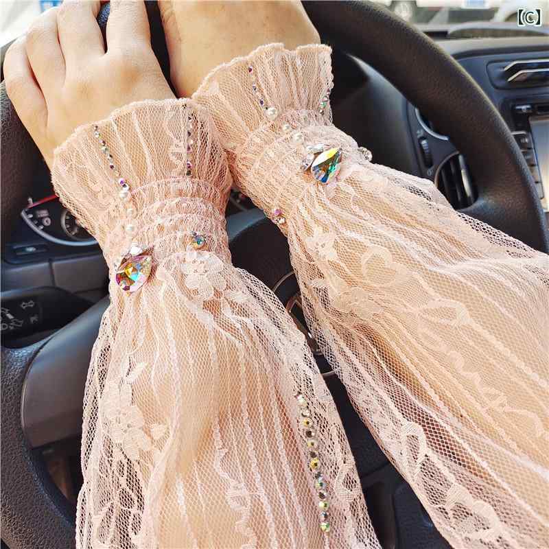 アームカバー 日焼け防止 冷感 おしゃれ 夏 無地 レース 薄い 運転 スリーブ プリーツ メッシュ レディース ロング グレー 白 ピンク