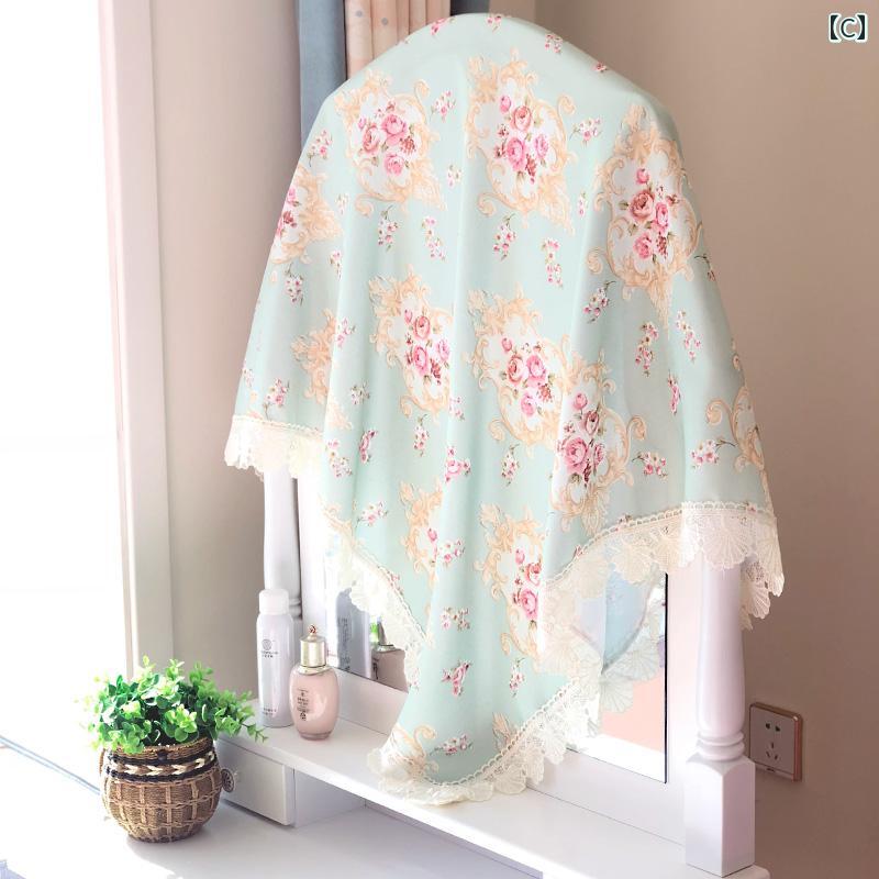 ドレッサー ミラー カバー レース 布 モダン ミニマリスト 寝室 ホワイト ピンク グリーン インテリア リビング おしゃれ シンプル チェック柄 花