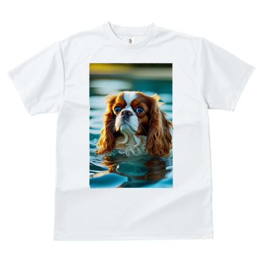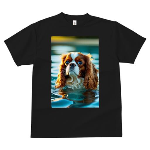 キャバリア Tシャツ レディース 犬ファン 半袖 春夏 犬柄 プリント カジュアル かわいい 人間用 個性派 ここだけのデザイン 面白 水 キャバリア 水面 波紋