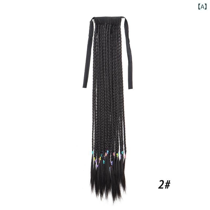 ポニーテールウィッグ レディース つけ毛 エクステ 三つ編み ボクシングブレイド ドレッド 紐結び式 巻き付け 耐熱ファイバー 合成繊維 ナチュラル 普段使い パーティー ヘアアレンジ ボリュームアップ ブラック ダークブラウン