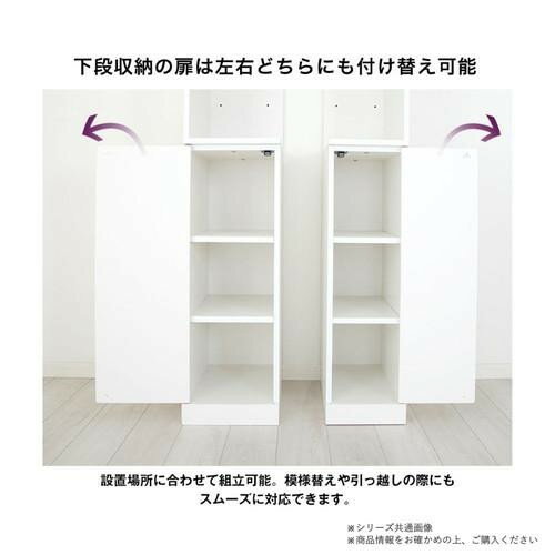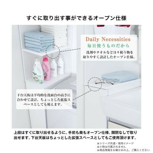<<ご注意下さい>>こちらの商品はメーカーよりお客様へ直接お届けの品になります。 当店での在庫はしておりません。在庫の有無はメーカー在庫のみになりますので、急な欠品や急に廃盤になる可能性がございます。こちらの商品の配送について○北海道・沖縄・離島につきましては、配送不可となりますので予めご了承お願いします。こちらの商品の包装(ラッピング)について○上記の理由(メーカーより直送)により包装はできませんので予めご了承お願いします。こちらの商品の不具合について○お届けしましたこちらの商品に不具合があった場合、商品到着日より1週間以内に当店にご連絡ください。メーカーが直接対応させて頂きます。○お客様がご自身で修理された場合、費用の負担は致しかねますので予めご了承下さい。キッチンや洗面所、ランドリー周りのわずかな隙間を収納スペースに。フロントもサイドもオープン仕様で、場所を選ばず設置できます。下台天板は平均的な洗面台やキッチン作業台に合わせた設計で、ちょっとした拡張スペースになります。角が出るところはすべてR加工しています。上段も扉も設置場所に合わせて左右どちら向きにも組立可能。扉も左右どちらにも付け替え可能です。下台はフラットな一枚扉で、すっきりとした見た目に。シンプルなデザインは色んなお部屋にも馴染みます。毎日使う日用品をより使いやすくするため、棚は全て可動棚。収納品に合わせて高さ調節可能です。サイズ:幅30×奥行44×高さ170cm個装サイズ:88.0×49.0×15.0cm重量:20.5kg個装重量:22000g素材・材質:プリント紙化粧繊維板(クリーンイーゴス)仕様:耐荷重量上台・下台地板:各10kg上台・下台棚板:各3kgお客様組立商品付属品:転倒防止補助バンド、穴隠しシール生産国:日本